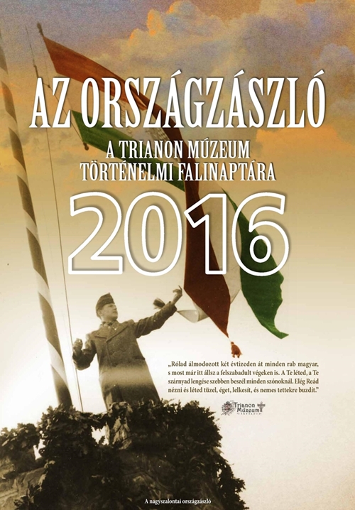 A Trianon Múzeum 2016-os naptára ismét különleges történelmi eseményt mutat be. Folytatva az előző évi hagyományokat, kuriózum a falinaptárak között. Mindenki szívesen lapozza, akinek fontos az összetartozás érzése. A naptárlapokon ritka, archív fényképek láthatóak az országzászló avató ünnepségekről, jelenlegi határainkon belülről és túlról egyaránt, olyan települések érintésével, melyek a mai napig őrzik magyarságukat.